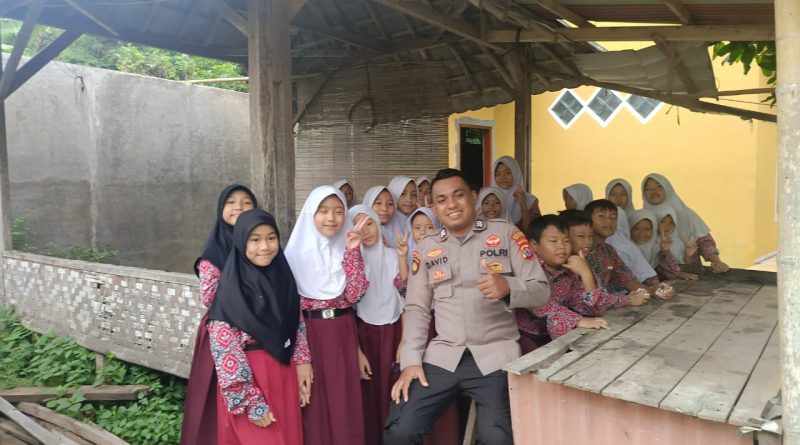 Sambangi Siswa Pulang Sekolah, Bhabinkamtibmas Polsek Baros Polresta Serkot Sampaikan Himbauan Kamtibmas