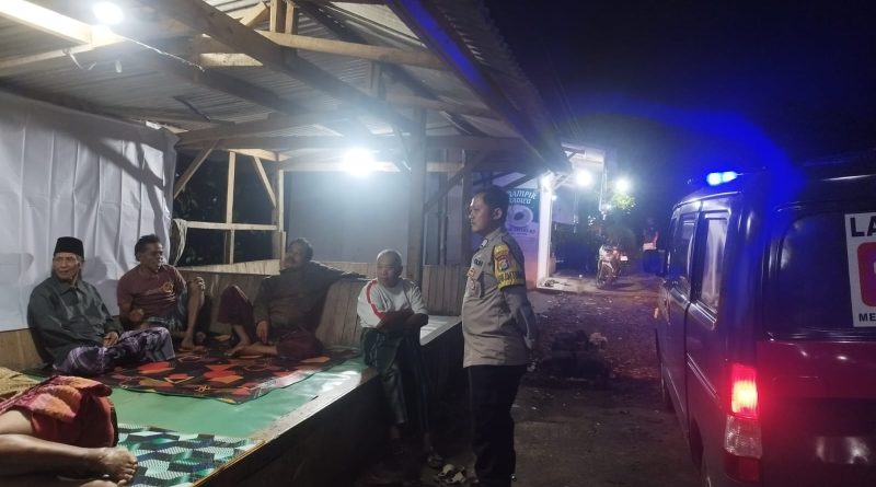 Bripka Sandy Bhabinkamtibmas Polsek Ciomas Polresta Serkot Polda Banten temui warga yang sedang melakukan sat kamling malam.