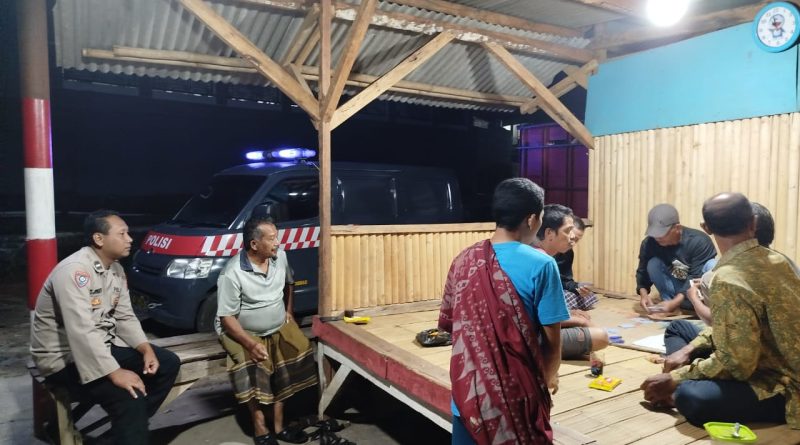 Kanit Binmas Polsek Ciomas Polresta Serkot Sambangi Warga yang Melaksanakan Siskamling di Malam Hari
