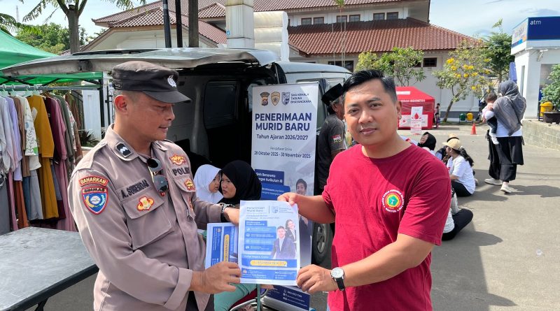 POLRESTA SERKOT– Kapolsek Serang AKP Hery Wiyono, SH, MM melaksanakan kegiatan sosialisasi penerimaan peserta didik baru SMA Taruna Kemala Bhayangkara pada kegiatan Car Free Day di Alun-Alun Kota Serang, pada Minggu pagi, 09 November 2025.
