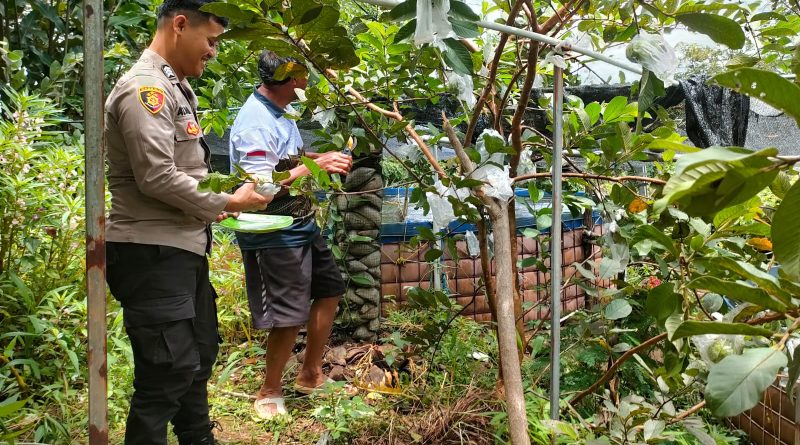 POLRESTA SERKOT_ Minggu, 09/11/2025 Polsek Ciomas Polresta Serkot dorong ketahanan dengan menyambangi warga pemilik buah jambu.