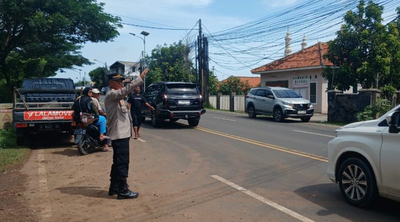 POLRESTA SERKOT_ Petugas Polsek Kramatwatu Polresta Serkot Polda Banten melaksanakan pengaturan arus lalu lintas tepatnya di depan gunung pinang desa pejaten kec.kramatwatu pada, Senin (10/11/2025)