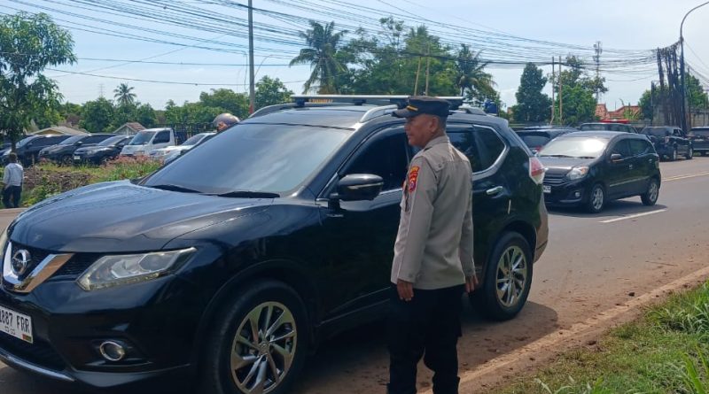 POLRESTA SERKOT_ Petugas Polsek Kramatwatu Polresta Serkot Polda Banten melaksanakan pengaturan arus lalu lintas tepatnya di depan gunung pinang desa pejaten kec.kramatwatu pada, Senin (10/11/2025)