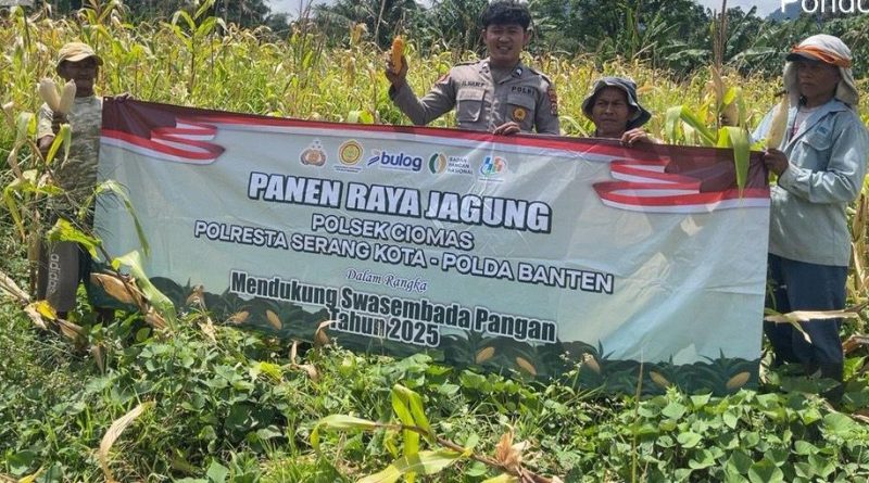 POLRESTA SERKOT_ Sebagai bentuk komitmen dalam mendukung ketahanan pangan nasional, Polsek Ciomas Polresta Serkot melaksanakan kegiatan panen jagung bersama Kelompok Tani, pada Senin (01/12/25).