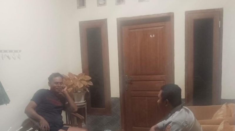 Bhabinkamtibmas Polsek Waringinkurung Polresta Serkot Sambangi Ketua Pemuda di Desa Binaan pada Malam Hari