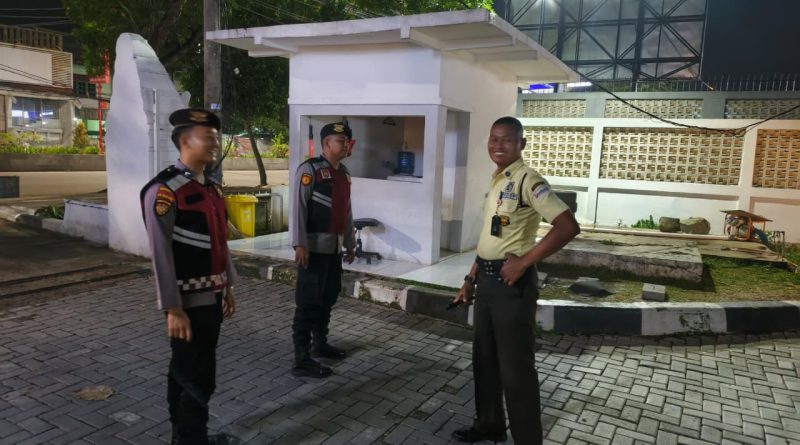 Antisipasi gangguan kamtibmas satuan samapta Polresta Serkot patroli kunjungi Satpam di Kc Bank Banten kota Serang.