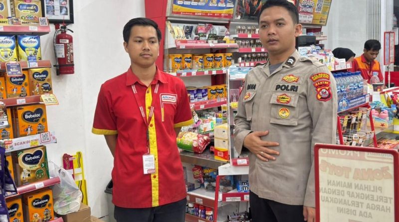 POLRESTA SERKOT | Personel Polsek Cipocok Jaya Polresta Serkot melaksanakan kegiatan patroli dialogis kamtibmas dengan karyawan Alfamidi Jl. Serang-Pandeglang Kel. Tembong Kec. Cipocok Jaya, Kota Serang, Jum’at (17/04/26).