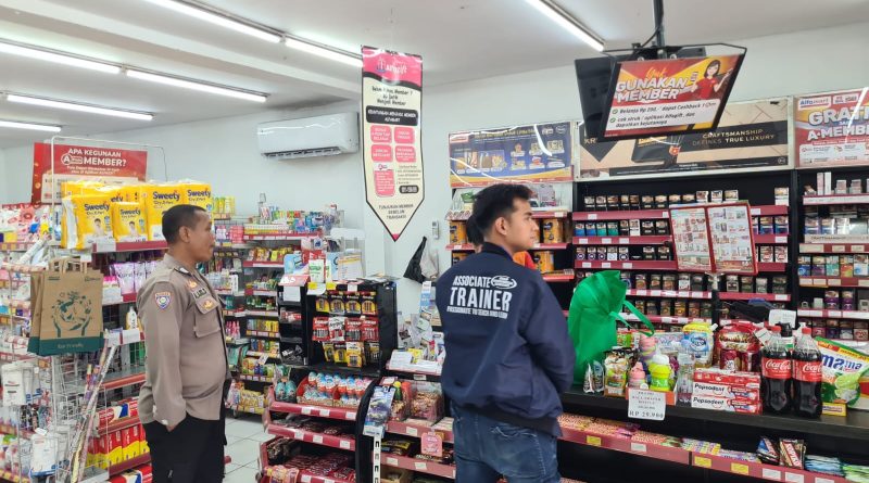 Dalam kegiatan ini anggota Polsek Kramatwatu Polresta Serkot Polda Banten menanyakan situasi keamanan di lingkungan alfamart baik di luar (parkiran)maupun di dalam waralaba.