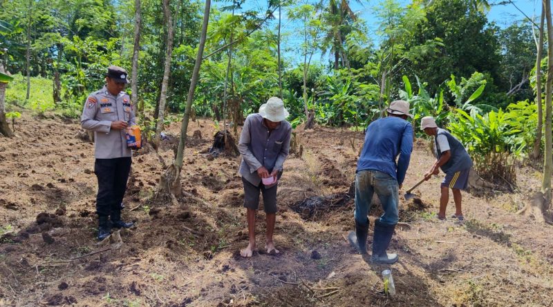Polresta Serang Kota – Bhabinkamtibmas Polsek Taktakan Polresta Serkot Bripka Irpan Sofyan membantu petani menanam jagung di Kelurahan Sayar Kecamatan Taktakan Kota. Serang. Minggu (19/04/2025).