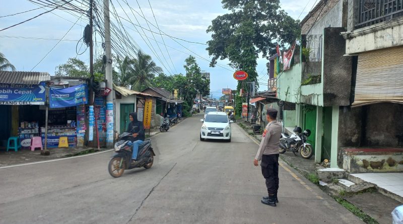 Personil Polsek Ciomas Polresta Serkot melaksanakan pengaturan arus lalu lintas