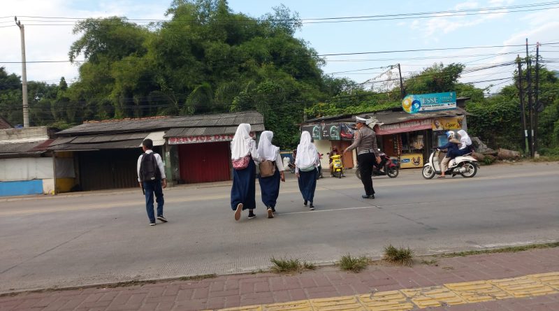 Seperti halnya Bripka Aldi anggota lalu lintas Polsek Kramatwatu Polresta Serkot Polda Banten melaksanakan pengaturan di jl.serang-cilegon tepatnya di depan SMPN 1 kramatwatu Kec.Kramatwatu,senin (20/4/2026).