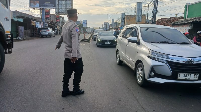 AKP Agus Sutiana Kanit Lalu Lintas Polsek Kramatwatu Polrestaserkot melaksanakan pengaturan lalulintas