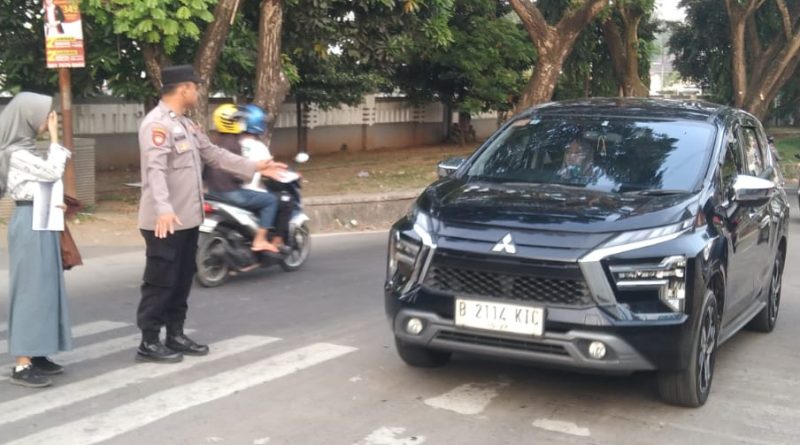Personil Lalu Lintas Polsek Taktakan Polresta Serkot terlihat mengatur lalu lintas, membantu masyarakat dan ketika hendak menyebarang jalan, petugas juga melakukan pengaturan terhadap anak-anak sekolahan yang menyebrang jalan.