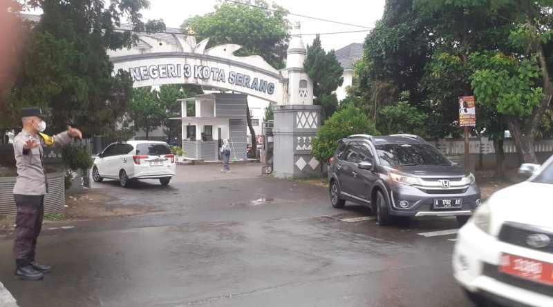 Bantu Penyeberangan Siswa, Personel Polsek Taktakan Polresta Serkot Hadir di Depan SMAN 3 Kota Serang pada Pagi Hari