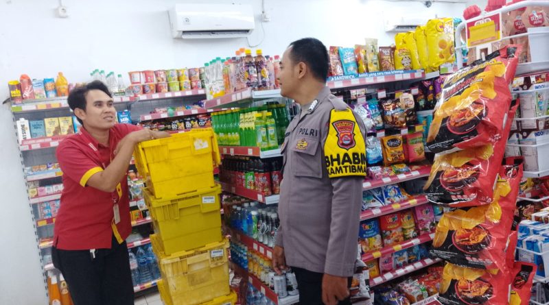Aipda Isjuwanto sambangi pedagang Waralaba sampaikan pesan kamtibmas.