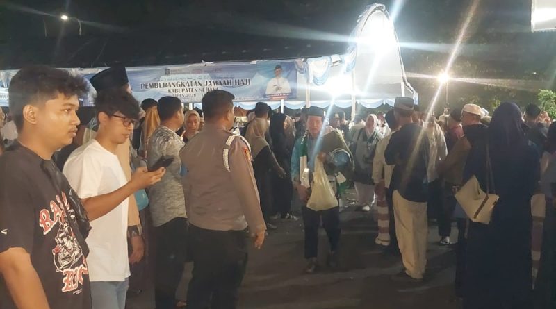 Personel Polsek Serang Amankan Keberangkatan Jemaah Haji Kabupaten Serang di Pendopo Bupati
