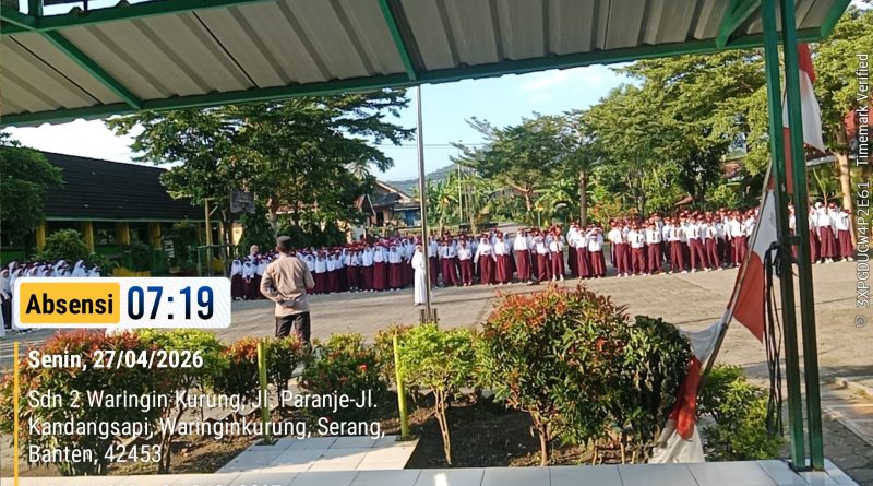 POLRESTA SERKOT | Dalam rangka menanamkan nilai kedisiplinan serta meningkatkan kesadaran hukum sejak usia dini, Kanit Binmas Polsek Waringinkurung Iptu Juwedi melaksanakan kegiatan sebagai pembina upacara bendera di SDN 2 Waringinkurung, Rabu (29/04/2026).